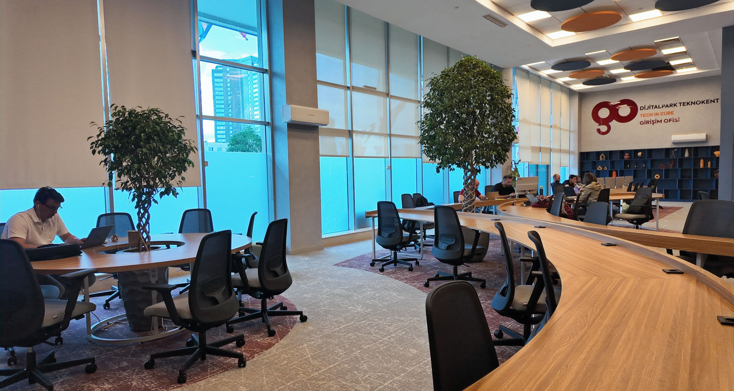 Tech in Cube, açık ofis konseptiyle tasarlanmış ortak çalışma alanlarında girişimcilere ve profesyonellere üretkenliği destekleyen bir ortam sunar.